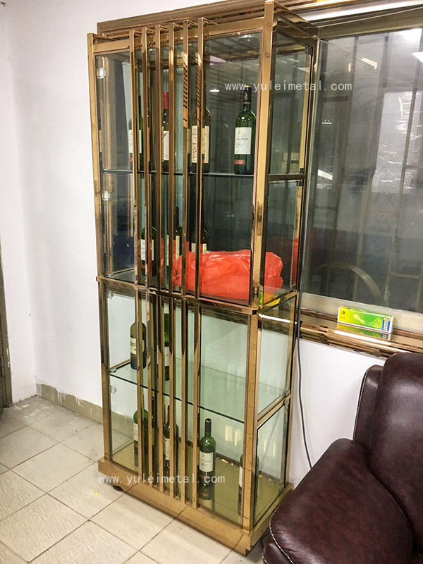 镜面玫瑰金定制不锈钢酒架,款式时尚、新颖,简约却耐看。本款玫瑰金不锈钢酒架,以不锈钢板制作成不锈钢柱子,有玻璃夹槽,预留酒架4面封玻璃板,成为玻璃不锈钢酒柜。不锈钢竖条作为镂空的酒架门、镂空造型。适合简约现在家居装饰户型,办公室装饰摆设。