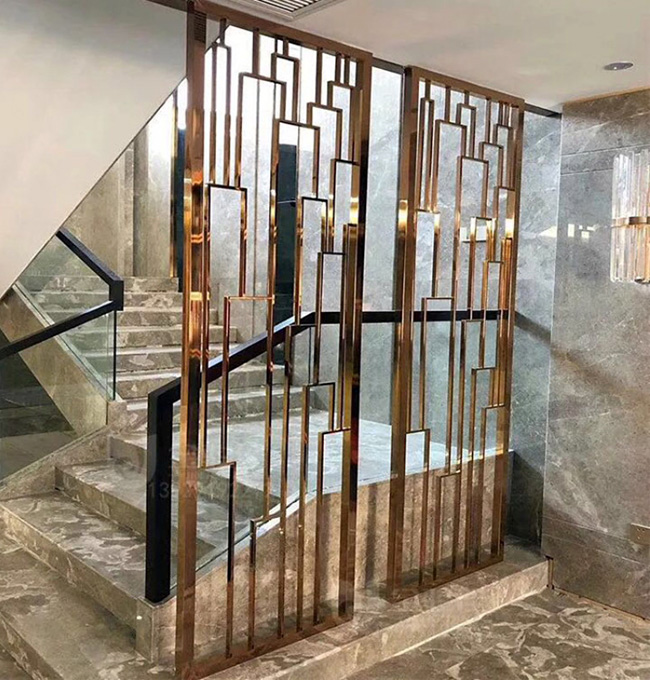 现代不锈钢屏风,主要体现现代造型风格,并带有简约的特征,且造型不拘一格,灵活多变。适合家装使用,餐厅隔断、楼梯口隔断、客厅隔断等安装位置。