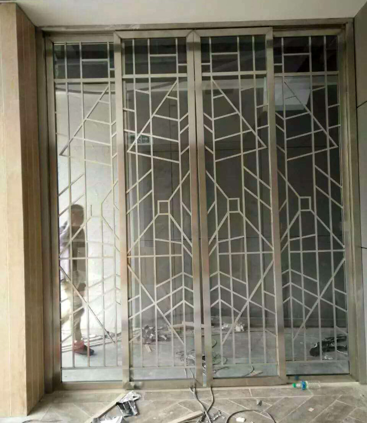 辽宁鞍山不锈钢活动屏风隔断墙[2016-04],不锈钢屏风隔断厂家含设计,生产加工,与安装于一体,是不锈钢屏风隔断家装系列的小型工程。不锈钢板材镂空花格,两边夹5mm钢化玻璃,组成活动不锈钢屏风隔断。安装于两个用砖墙隔断预留的门洞内,巧妙的设计,使不锈钢屏风隔断的功能得到充分的发挥:隔断,装饰,空间分隔于一体。