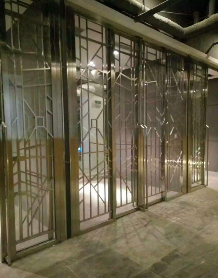 这款不锈钢活动屏风隔断墙,看着比较素色,貌似也没有什么特别之处?是的,因为它没有镀色,也就是不锈钢原来的颜色罢了,如果在表面镀上玫瑰金,黑钛,钛金,香槟金,黄铜等颜色,装饰的效果就会上更高一个档次了。定做的时候,花格的款式肯定不止这个款式的。