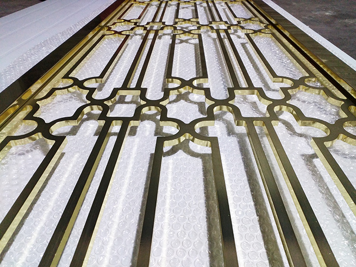 亮面水镀钛金铝镂空屏风厂家定制